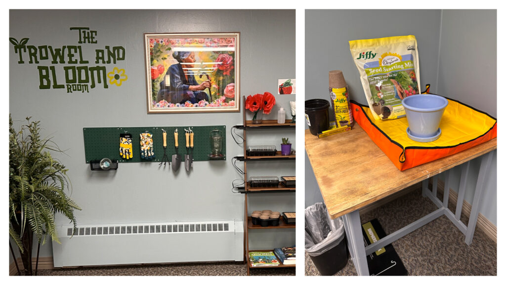 So do we! Plant seeds or repot plants in the Trowel & Bloom Room. Then, transplant them outdoors in one of our raised garden beds in the courtyard.